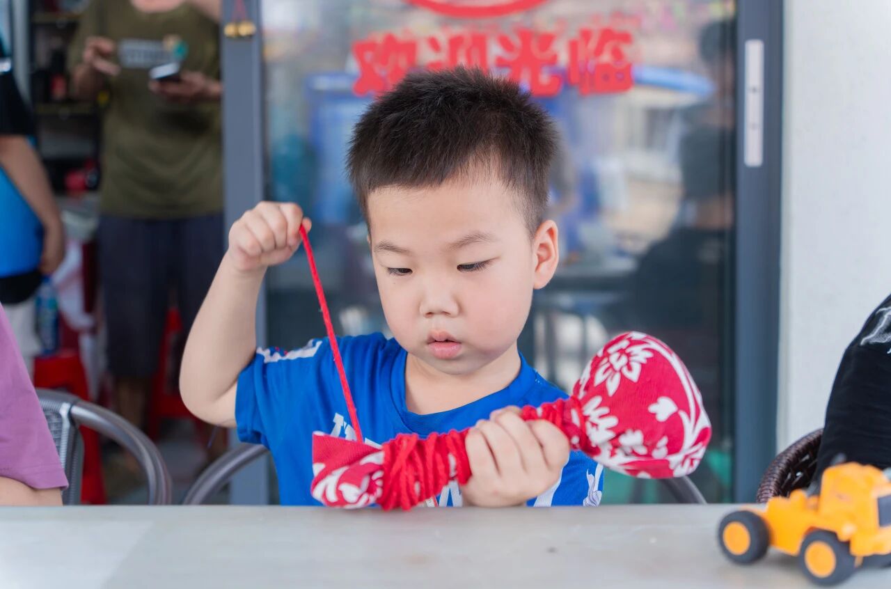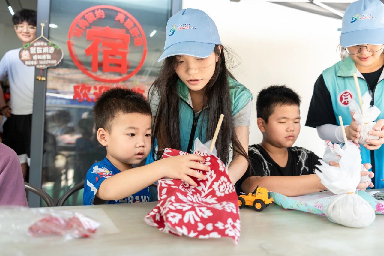 制作环节中,队员们采用分步教学法,从揉制艾草时应注意的力度,到绕线过程中应注意的顺序。队员们亲自示范,带着孩子们完成一件件充满童趣的手工艺品。艾草锤散发淡淡清香,成为孩子们爱不释手的"文化纪念品"。