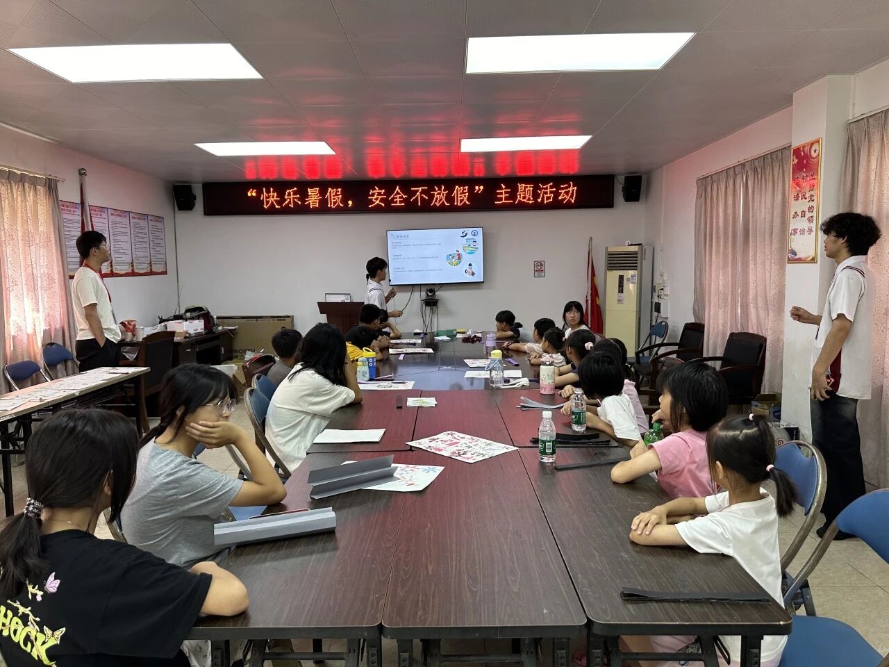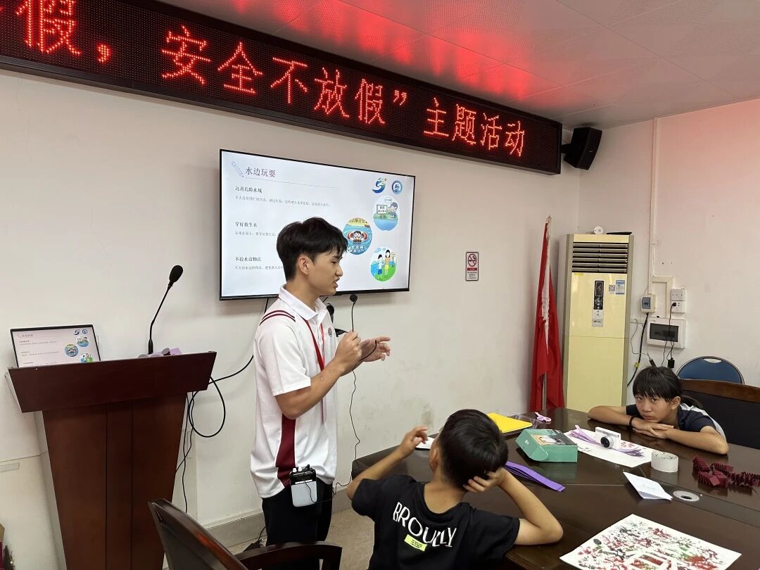 音乐渐歇,课堂转入“安全守护模式”。队员们化身“安全小老师”,用动画短片和情景问答,把五个重要主题讲得生动易懂:讲到防溺水,就模拟“遇到有人落水怎么办”的场景;说交通安全,就举着卡通红绿灯教具教“红灯停绿灯行”;聊网络安全时,特意提醒“不跟陌生人分享密码”……孩子们听得格外专注,有人皱着眉头记下“不能独自去河边”,有人举手提问“过期的牛奶能喝吗”,还有人认真重复着“过马路要牵大人的手”。这场科普里,藏着队员们的责任心——把专业知识转化为孩子能懂的语言,只为筑牢安全防线;而孩子们的专注与提问,正是他们对自我保护的重视、对规则的敬畏。毕竟,安全是成长路上最不能缺席的铠甲,每一个记在心里的知识点,都是给未来的自己最好的守护。