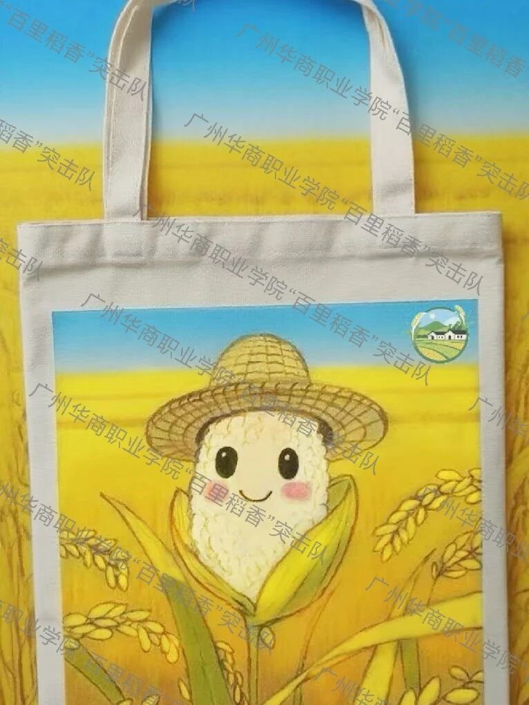 岳村不仅有生机勃勃的农耕产业,更藏着古村落文化等珍贵的文旅资源。队员们发挥设计、营销专长,聚焦“文创+”模式,深挖丝苗米农耕文化与古村落的独特价值。在文创产品设计上,从稻田风光、丝苗米形态中汲取灵感,将农耕元素巧妙融入稻粒形帆布袋、钥匙扣、冰箱贴、书签等物件,让实用价值与文化传播功能相得益彰;在文旅路线定制中,串联古村落特色景点、金黄稻田景观与农耕体验点,打造出沉浸式感受乡土文化与田园风光的特色路径。当成果落地,文创IP逐步成型、文旅路线清晰呈现,岳村的文旅发展有了新亮点,为吸引游客、促进乡村三产融合,添上了青春助力的一砖一瓦。