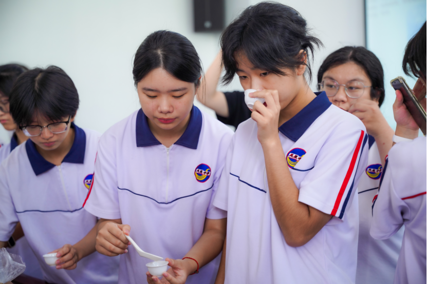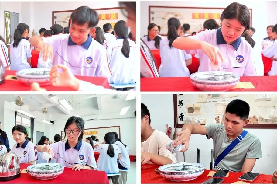 通过“品鉴+体验+竞技”的多元形式,突击队员们成功地将凤凰单丛茶这一承载着深厚潮汕文化与生态智慧的瑰宝,以青少年喜闻乐见的方式带进校园。40名学生化身“评茶师”,盲辨蜜兰香、鸭屎香、杏仁香等,体悟“山韵蜜韵”的风土密码。不仅让凤凰中学的学子们零距离感受了家乡名茶的魅力,学习了非遗知识,提升了审美情趣和文化自信,更在轻松愉快的氛围中锻炼了观察力、专注力、团队协作能力和实践动手能力。