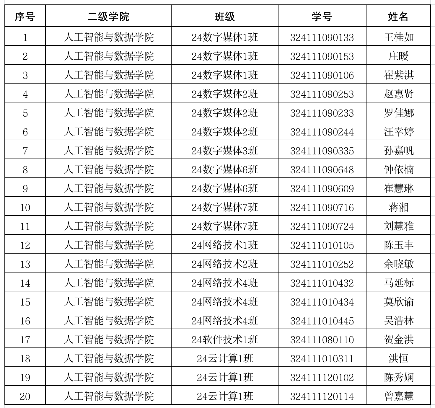 为擢选菁英,赓续薪火,赋能发展,人工智能与数据学院始终致力于团学工作的科学化、制度化与规范化建设。秉承“公平、公正、公开”的遴选原则,经学生自主申报、结构化面试答辩、综合能力评估及学院严格审议等环节层层筛选与全面考量,新一届团委学生骨干候选人名单现已产生。现将人工智能与数据学院团委新一届学生骨干候选人名单予以公示。