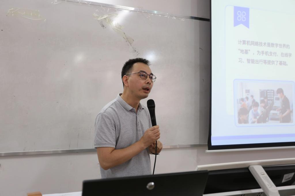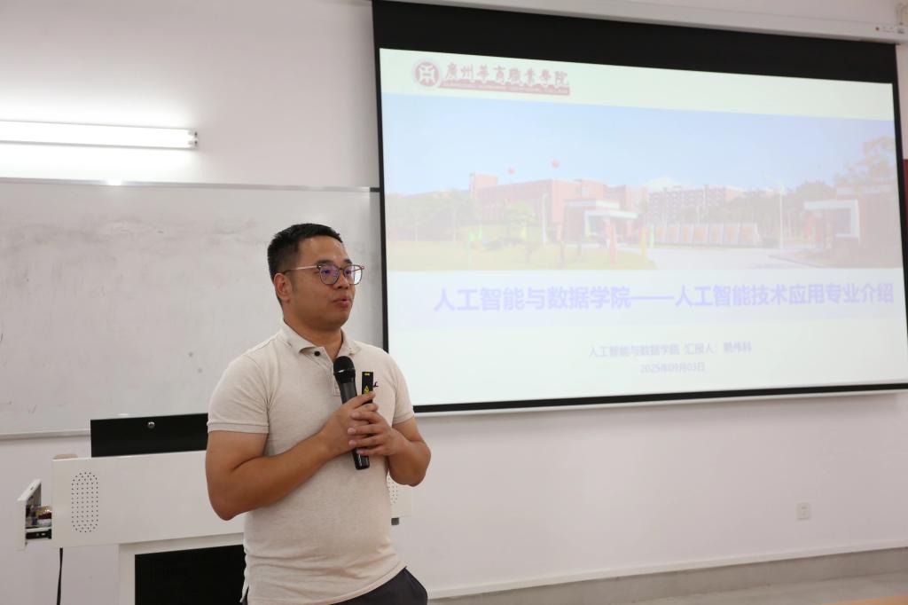 首先由龚芳海院长代表学校及学院对新同学们的到来表示热烈的欢迎。随后,龚院长向25级新生们概述了学院的基本概况:本院目前开设了八个领域的优质专业,积极组织学生参与广东省职业院校技能大赛、广东省大学生计算机大赛以及一带一路与金砖国家技术发展与技术创新大赛等多项重要赛事。在过去年份中,我们的师生在各类竞赛中屡获佳绩,赢得了多项省级以上的荣誉奖项。此外,院长还通过列举多个真实的校企合作项目案例,引领新生们深入理解专业知识与实践应用。