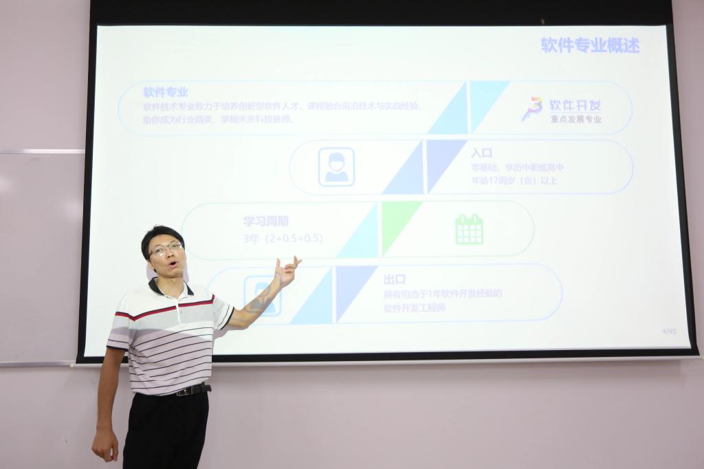 为了同学们更好的了解到我们学院的专业发展和就业前景,特别邀请来了我们8个专业的老师为同学们深入讲解和解答专业知识问题。由赖伟科老师讲解人工智能技术应用专业、王道宽老师讲解软件技术专业、杨利杰老师讲解大数据技术专业等。