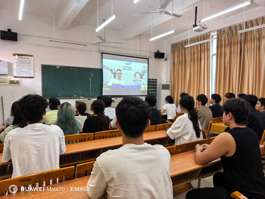 在学院的广泛动员和各位班委的积极组织下,人工智能与数据学院的同学们以班级或宿舍为单位,准时守候在屏幕前。从收音机到手机直播间,FM89.0的电波和网络信号将大家紧密相连,共同学习。