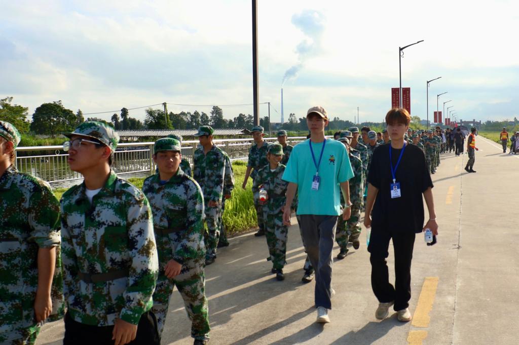 拂晓时分,广州华商职业学院军训团第二营(人工智能与数据学院)的参训新生整装待发,辅导员们亦陪同在侧,为即将到来的拉练做好准备。随着副校长孙虎一声令下,受训队伍如同波澜壮阔的洪流,气势磅礴地向本次拉练目的地挺进。