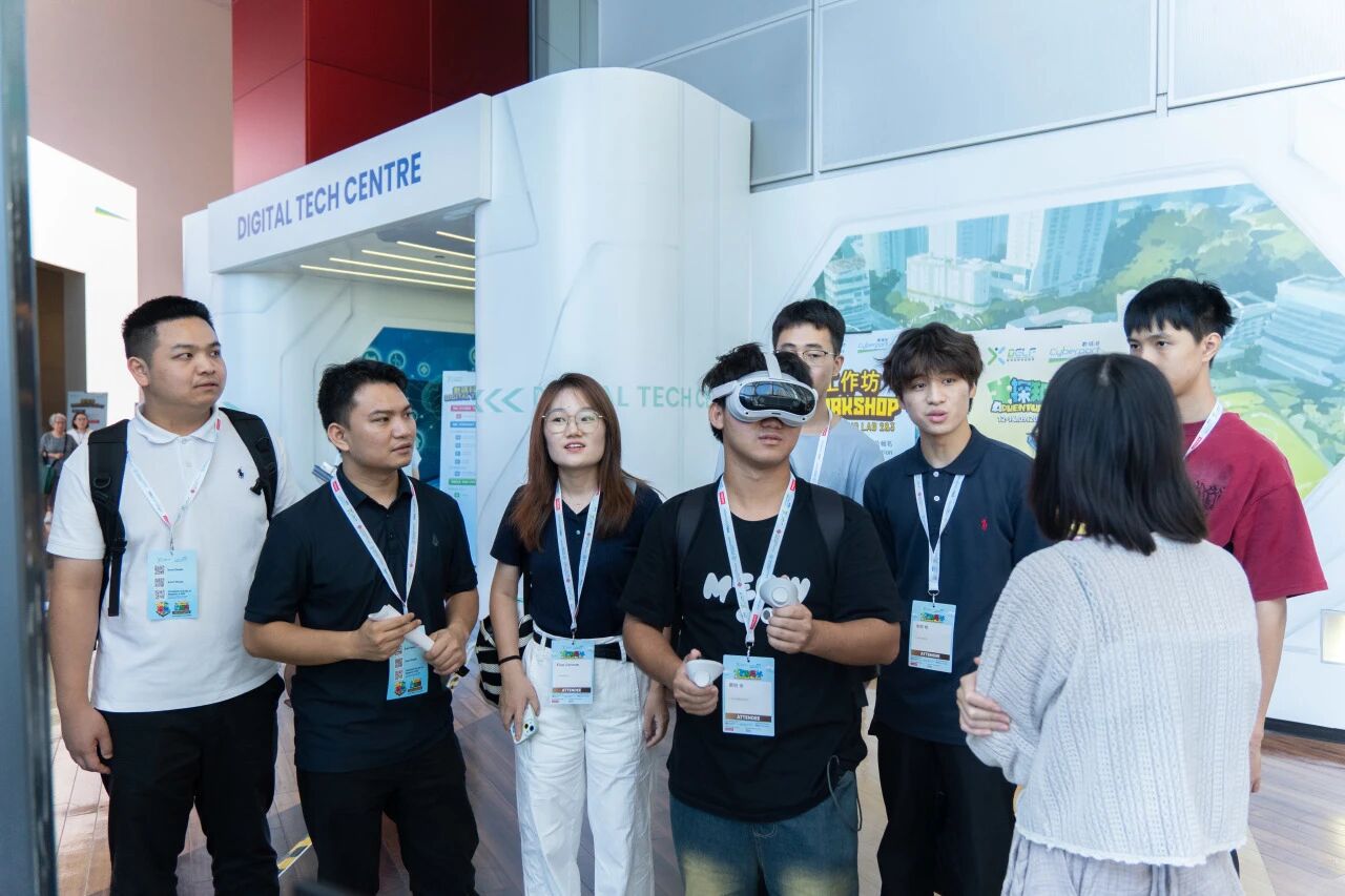 数码港商场中庭的乐龄电竞锦标赛现场,银发群体们在工作人员的帮助下调试 AI 辅助操作设备,在工作人员耐心指导中理解 AI 在降低科技使用门槛、服务多元人群中的价值;“闪避球 MR” 电竞比赛中,同学们佩戴 VR 设备组队竞技,在虚拟与现实的联动中,感受 AI 在电竞领域的沉浸式应用。