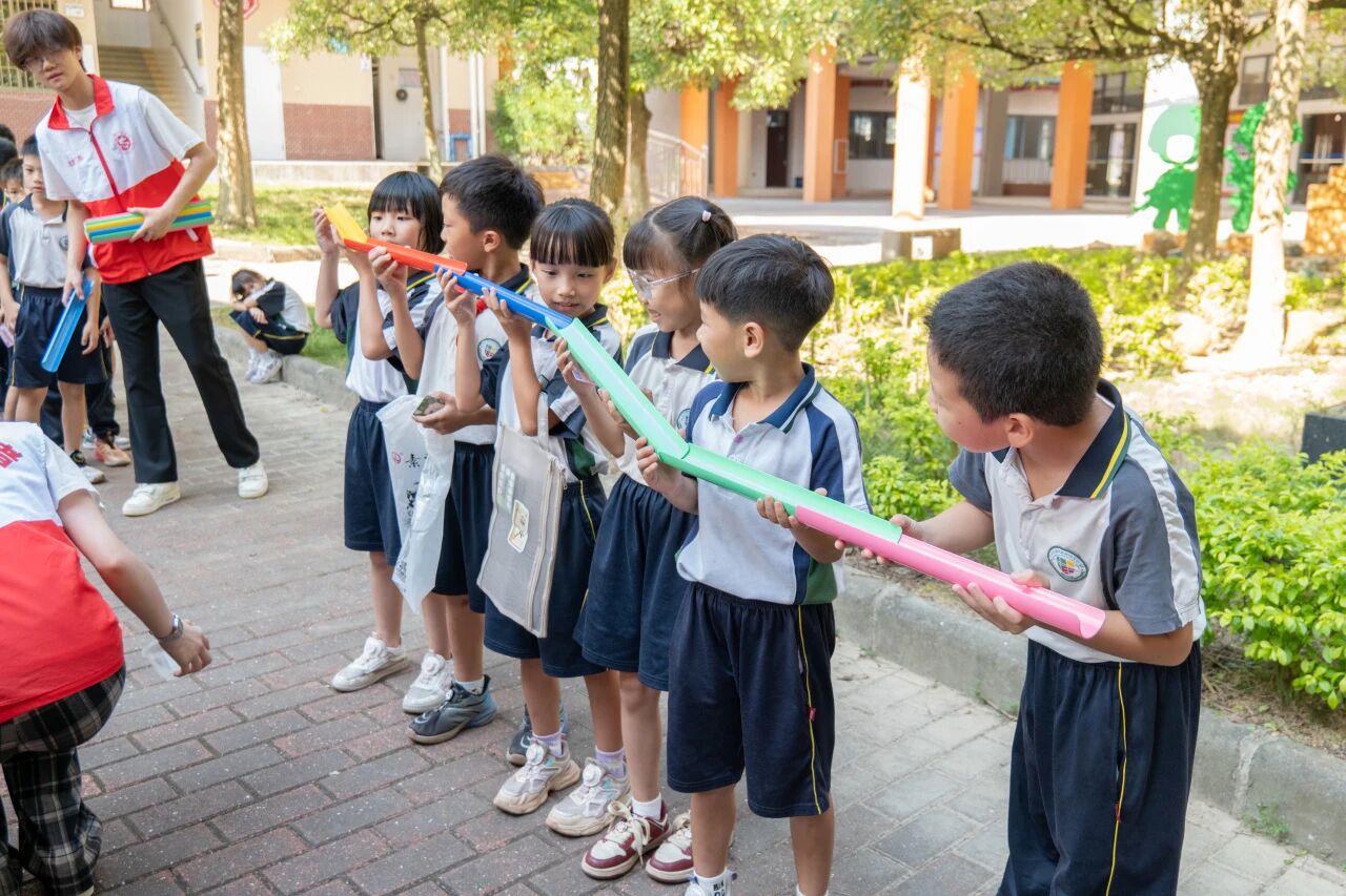志愿者们将 5-6 名儿童分为一组,让孩子们每人手持一段 U 型管共同运送 “能量球”,志愿者不仅在旁指导技巧,还不断鼓励孩子们 “慢慢来,你们是一个团队!”;当小组成功将球送到终点,他们又会第一时间为孩子们欢呼,见证“团结就是力量”的精神瞬间在孩子们心中发芽。