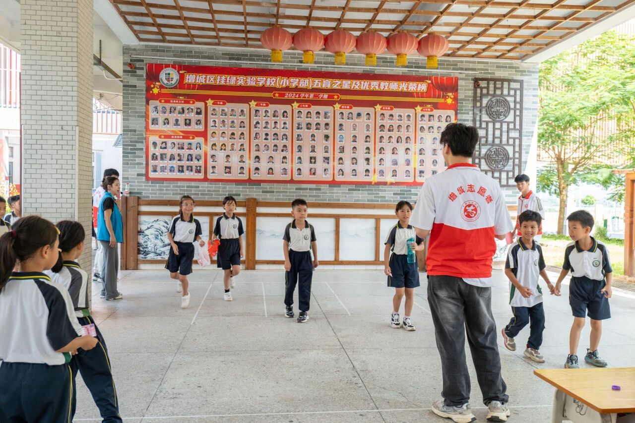 2025年10月11日下午,人工智能与数据学院的志愿者们,于这个阳光明媚的周六前往增城挂绿实验学校,协助广州市增城区乐众社会工作服务中心,共同为该校同学们举办了一场主题为 “城市探险家・奇妙的成长之旅” 的游园活动!这场欢乐盛宴的背后,是志愿者们以耐心与爱心为孩子们搭建起探索、学习与成长的桥梁,让我们一同走进这些暖心瞬间,感受志愿者的力量!