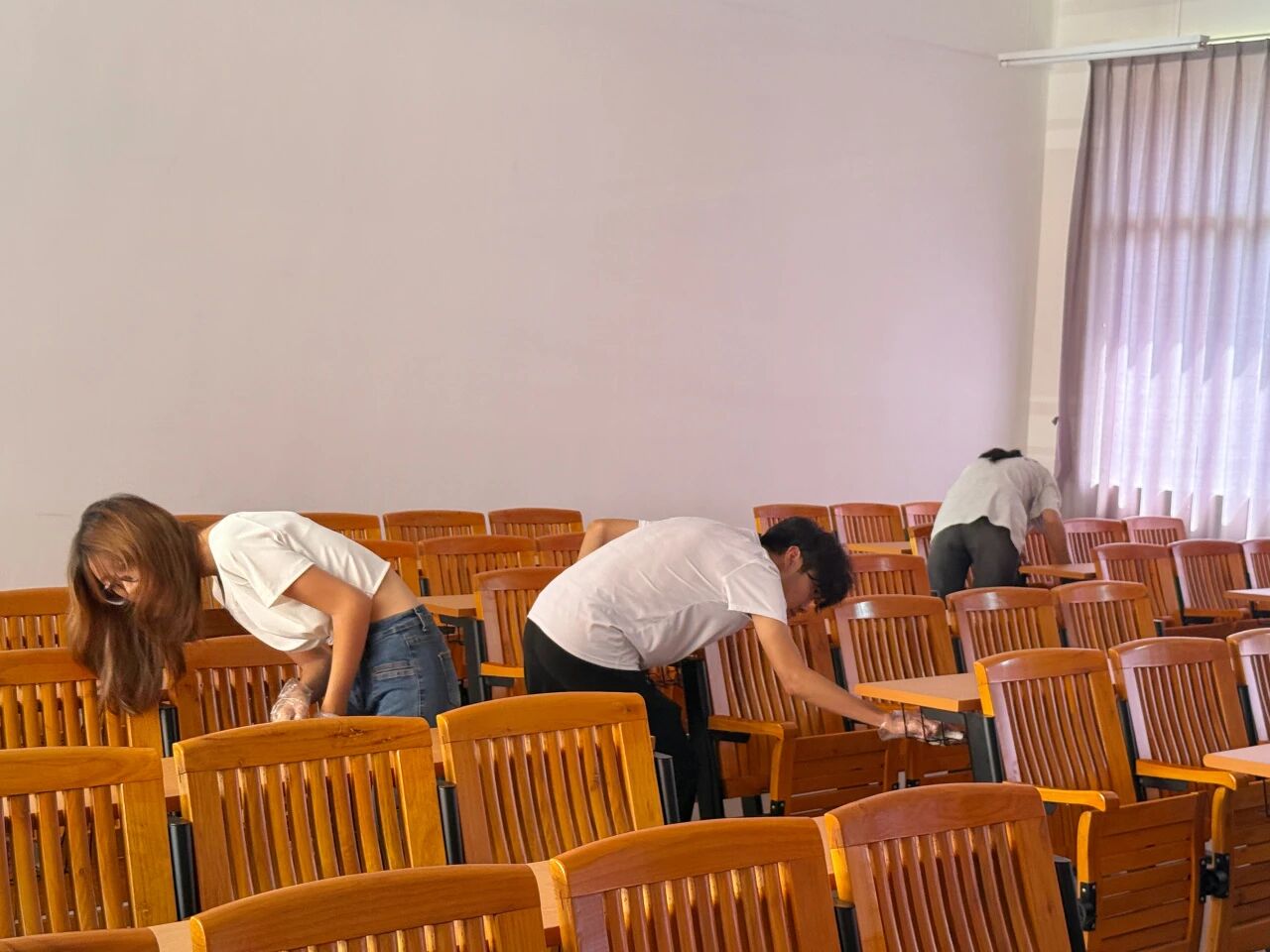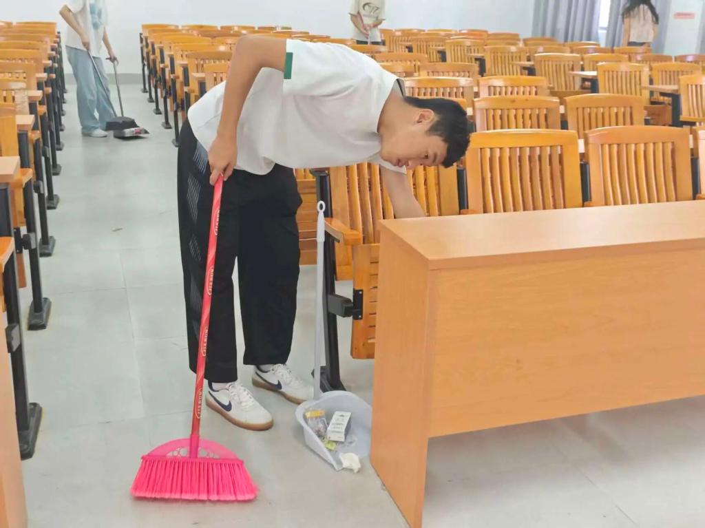活动当天,志愿者们分工明确、配合默契,手持清洁工具对实训教室进行全面清理。从课桌抽屉到地面角落,大家不放过任何细节,用实际行动为教学环境“焕新”,展现出青年志愿者的责任担当与服务精神。