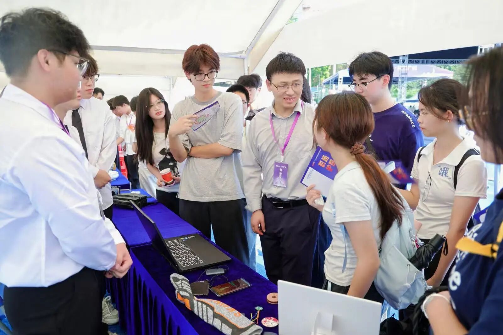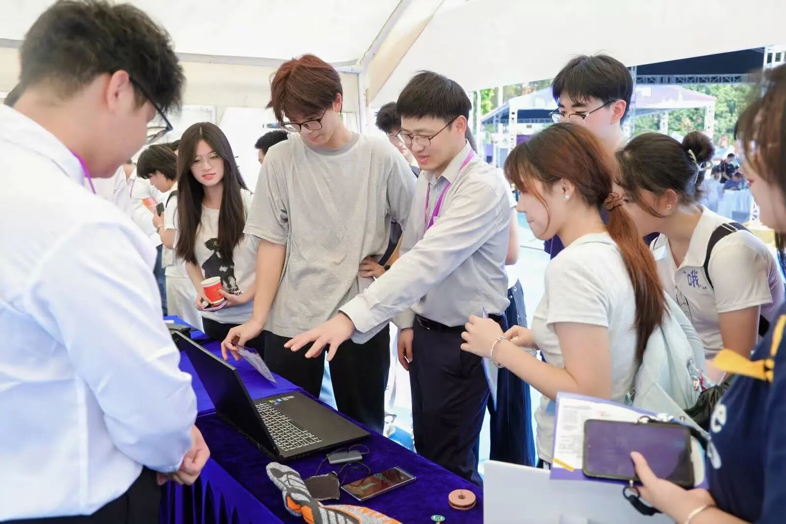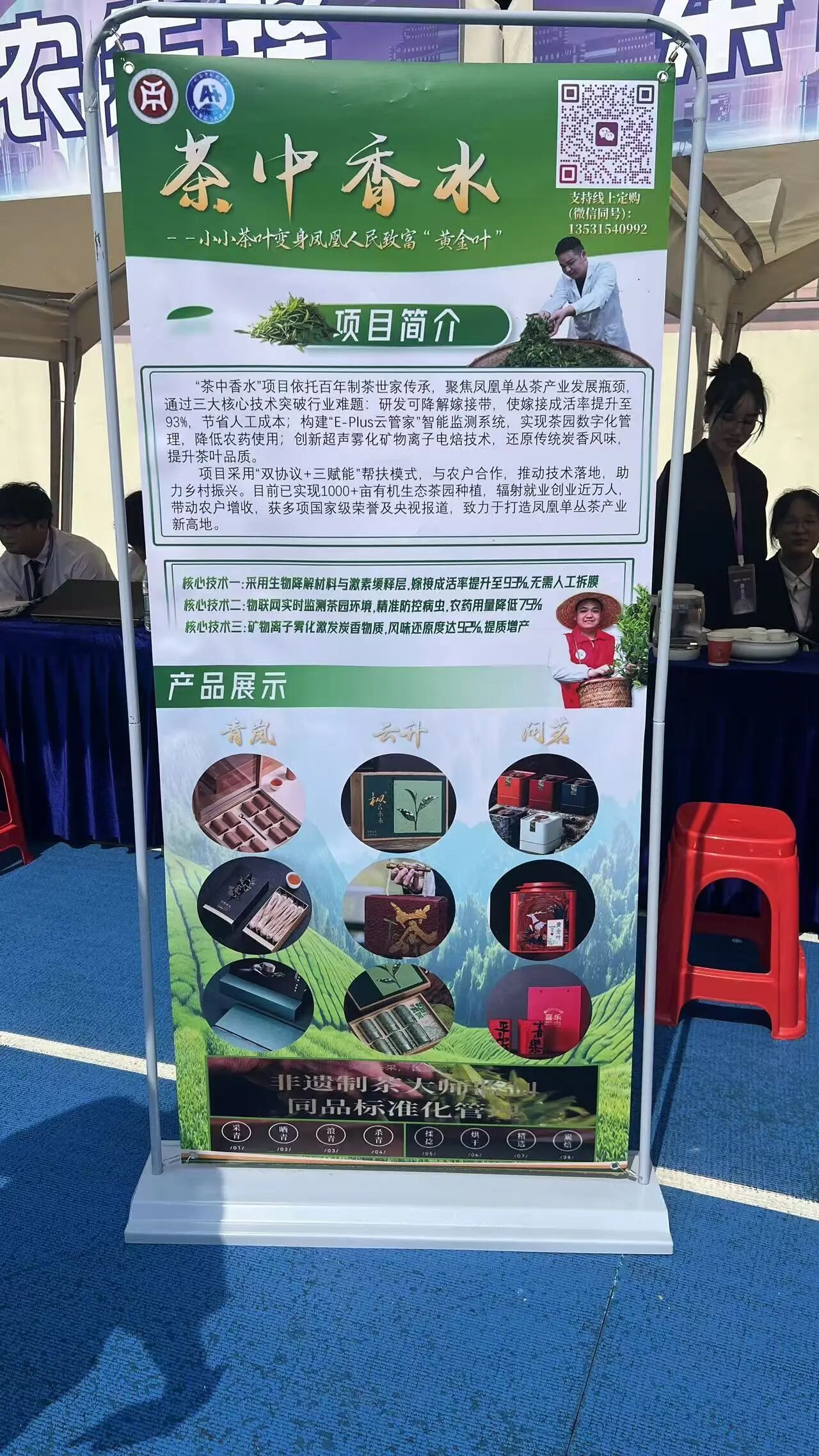 活动现场,人工智能与数据学院广州校区的“茶中香水”项目展位区始终人头攒动:有人带着“茶中香水”凤凰单丛茶项目惊艳亮相——百年制茶工艺与生物降解嫁接、智能茶园监测等黑科技融合,让小小茶叶变身“致富黄金叶”,1000+亩有机茶园、近万就业岗位的成果,引得参观者频频驻足;也有人带来AI智能硬件、文创IP等项目,从技术创新到文化破圈,多元赛道的创意在此交汇。