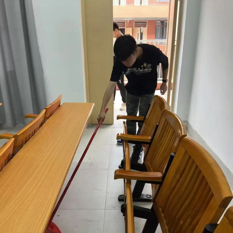 志愿者们以“俯身清扫”的姿态,传递“奉献、友爱、互助、进步”的志愿精神,聚焦课室容易积尘的地面、桌椅缝隙等区域进行细致清洁,全面提升课室整洁度,优化师生教学与学习体验。在实践中,同学们体悟协作与担当,让劳动教育与志愿服务深度融合,在服务中成长,在奉献中绽放青春光彩。
