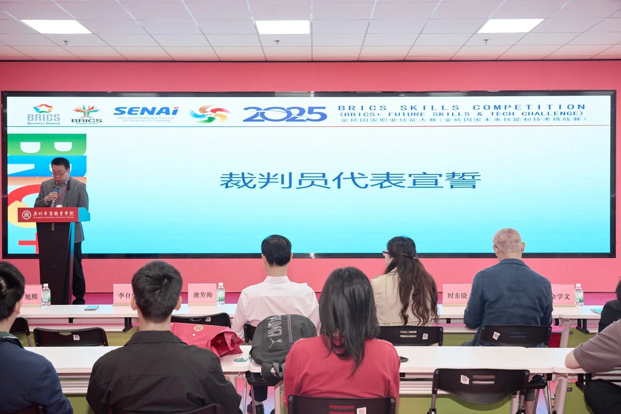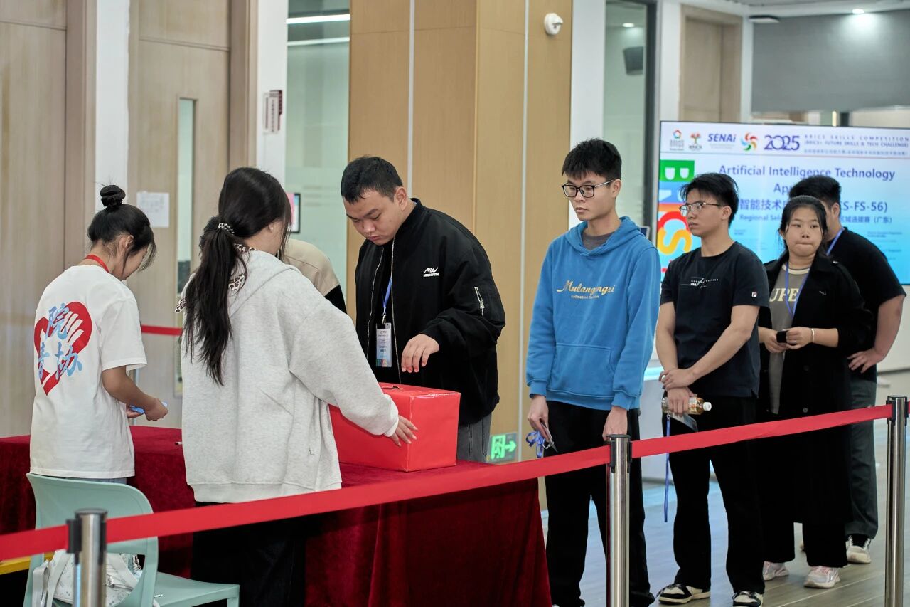 秋高气爽,战鼓催征。10月25日至26日,2025金砖国家职业技能大赛——人工智能技术应用赛项中国赛区选拔赛(广东)在我校创科楼隆重举行。本次赛事吸引了来自广东省内的37支参赛队伍同台竞技,共赴一场智慧与技能的较量。