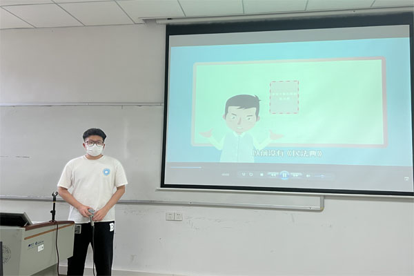 首先,何俊诺向同学们讲解了什么是“法制”,法制,顾名思义,就是法律和制度的结合。对于我们大学生来说,我们或许只是一个正在叩响法制大门的学生,又或许对所谓的法制只略知一二,但是,迎着时代的朝阳,法制也让我们越来越熟知。法制影响了我们的生活,引导着我们的学习,领导着我们不断向前进步。对于学习阶段的我们来说,我们不断要学习书本知识,还要掌握一些必要的法制知识。因为法制教育不仅影响着我们的学生时代,更影响着我们的终生。