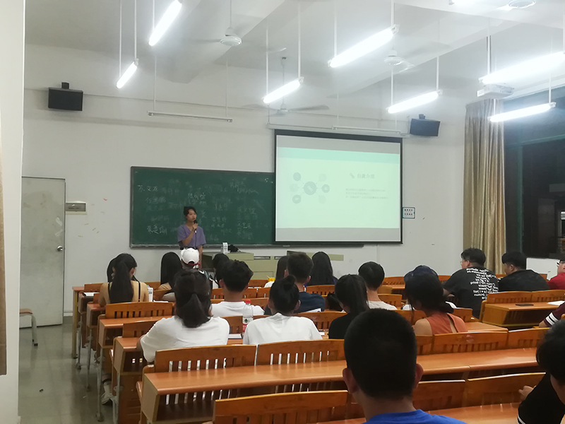 在各班的班会上,助理班主任首先进行自我介绍,然后各位新生以次进行自我介绍。接着助理班主任为新生详细介绍学校的基本概况、学院领导和两位系领导,四位辅导员。新生们都非常认真地听着助理班主任的讲解。