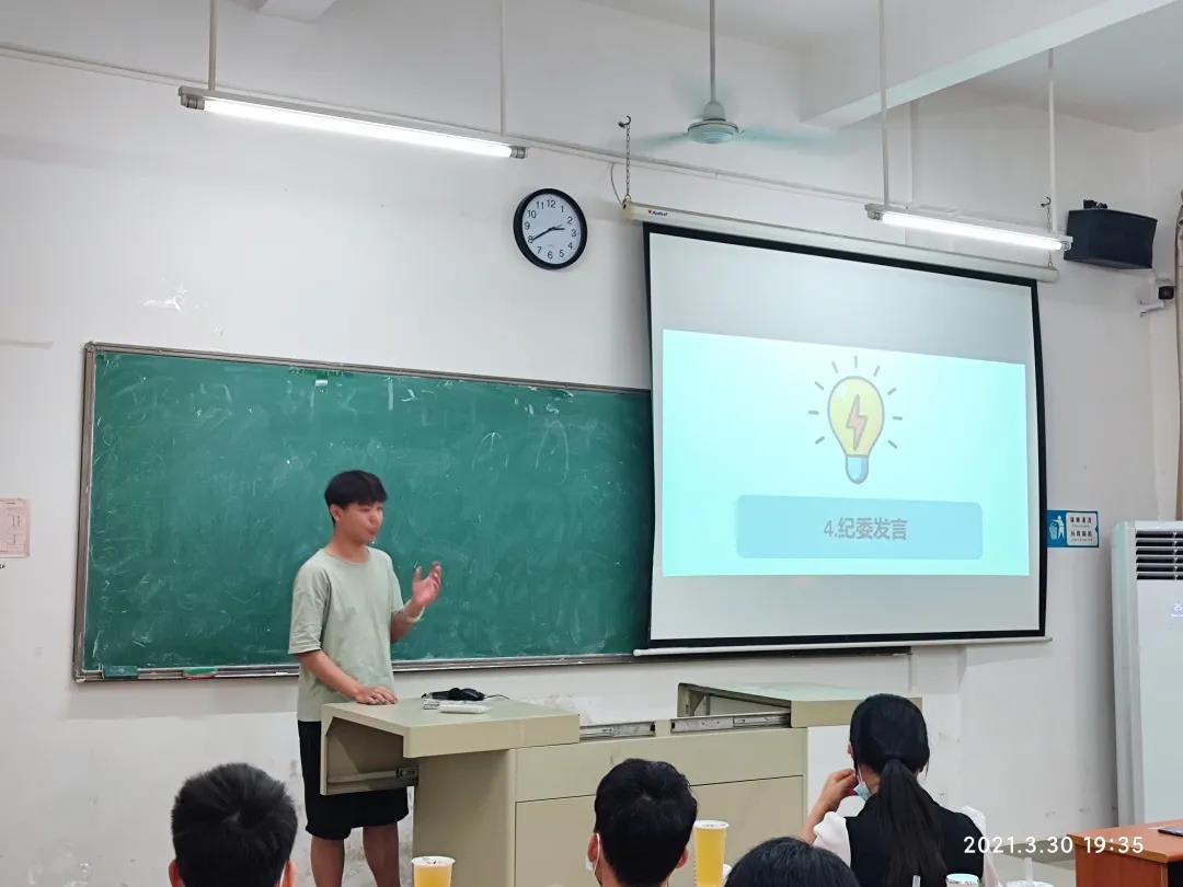 吴仕坚老师从身体健康、学业、情感三方面给20网络技术3班提出了宝贵的建议,以及大学三年对我们的要求,争取评优评先,早日成为一名光荣的优秀党员。