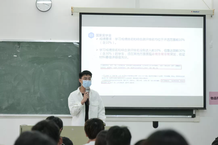 资助宣传使者小组成员依次到达对接班级,他们从综合测评和校奖学金,国家助学贷款,国家奖学金和国家励志奖学金,国家助学金和贫困认定,新生专项资助,优秀学生干部,勤工俭学,七个方面对同学们进行讲解,为同学们解答疑惑。