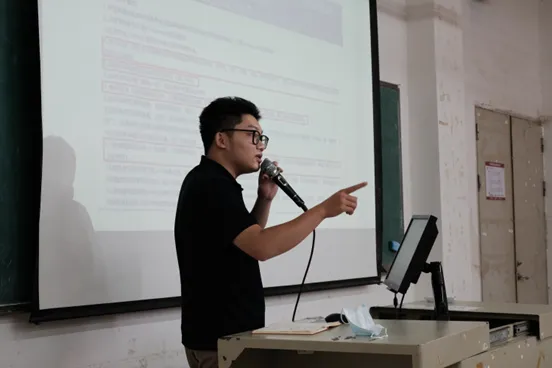 资助宣传使者小组指导老师方毓聪作总结发言,方毓聪老师就本次讲座内容进行补充说明,提出了一些需要注意的细节,总结宣讲员宣讲的内容,让大家更加清楚地明白了资助政策的相关要求。