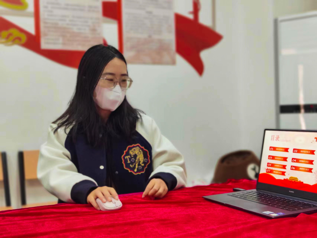 随后,学生党支部书记叶锐从教育、监督、服务党员有力等七个方面总结了自己自担任学生党支部书记以来的工作成果。她提到,这一年来,自己积极组织开展相关活动,教育并引导学生党员积极主动参与疫情防控志愿活动,充分发挥党员先锋模范带头作用。另外还积极引导师生关注创新创业,鼓励学生积极参加创新创业大赛并带领学生获得了良好成绩。