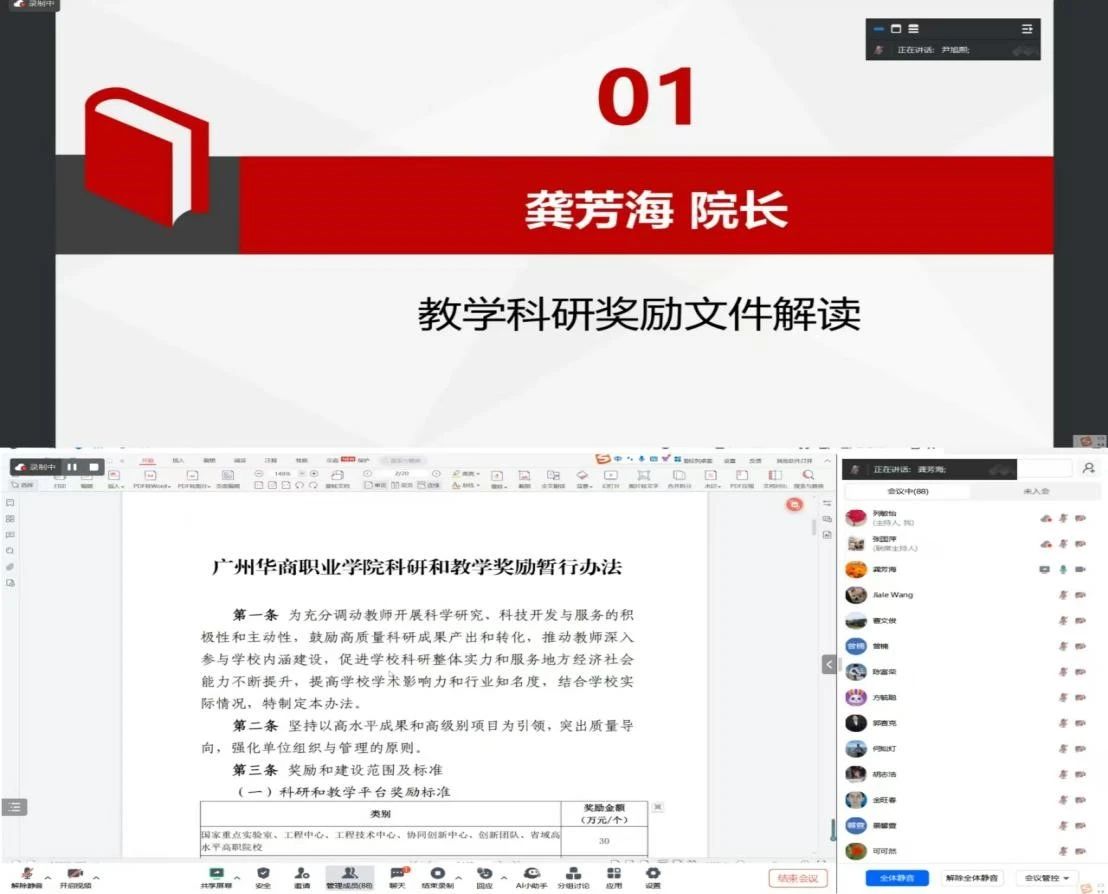 会议开始,龚芳海院长对关于印发《广州华商职业学院科研和教学奖励暂行办法》的通知进行了详细的解读,为今后科研工作指明了方向。