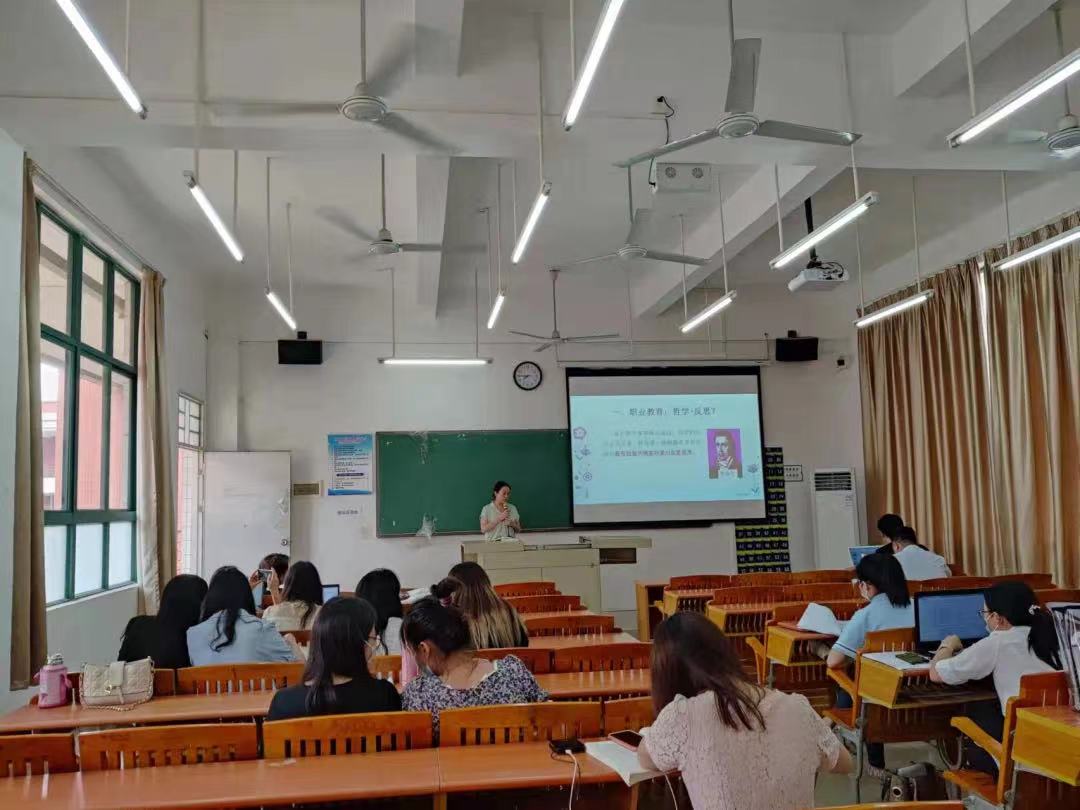 周贤娴老师《关于职业教育的几点哲学反思》,通过哲学家黑格尔的名言提出了职业教育的治学方式的途径:接着对国外国内关于职业教育和高等教育孰重孰轻进行了对比;跨界思考是职业教育哲学的逻辑起点从而提出了职业教育的特点;提出了职业教育哲学反思的五大范畴:何谓知识的有序或无序、学习是做加法还是做积分、知识与技能是构成还是生成、技能与技术的关系是层次还是类型、人才的社会分工是分层还是分类。最后提出了三个工作反思。