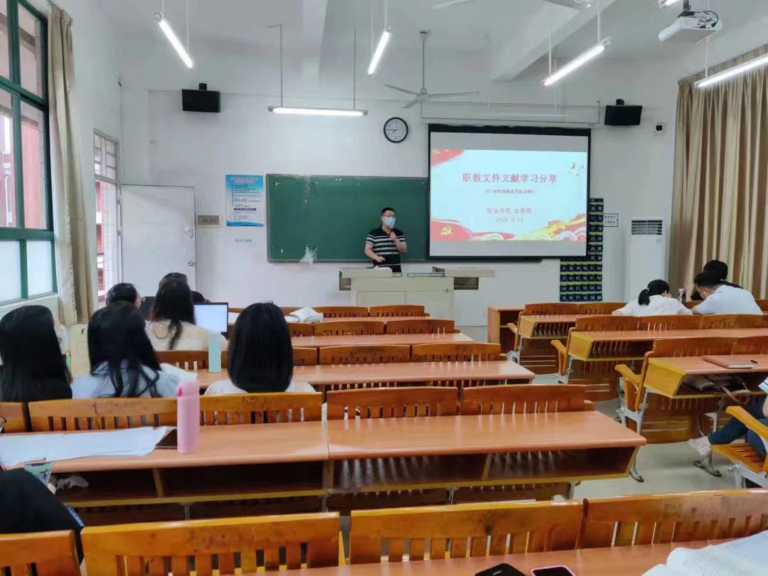 为深入学习并领会习总书记对职业教育工作的重要指示精神,进一步深化产教融合、校企合作,助推现代职业教育体系建设,财金学院于6月13日14时10分在博学楼B303继续召开了职教文件文献学习大会。