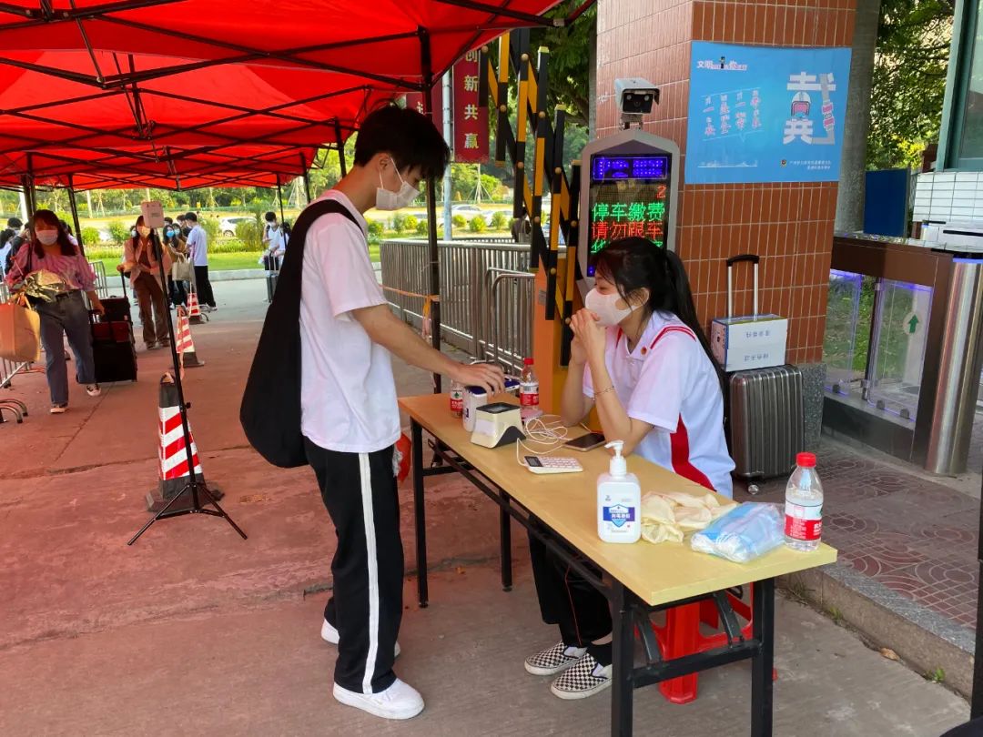 学生返校期间,在校门口处设置志愿驿站,采取轮班制值守,全面跟进服务流程,配备了口罩、消毒洗手液等防疫物资,积极落实疫情防控措施,保护返校学生健康安全。