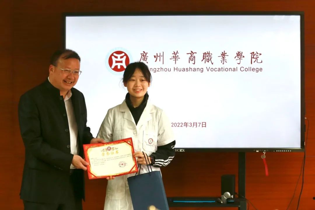 党委书记翁礼成表示希望全校同学都能够向蔡楚文同学学习,身体力行地践行“厚德 励志 博学 创新”的校训,努力成长为德技双馨的青年,积极弘扬正能量,为社会作贡献。