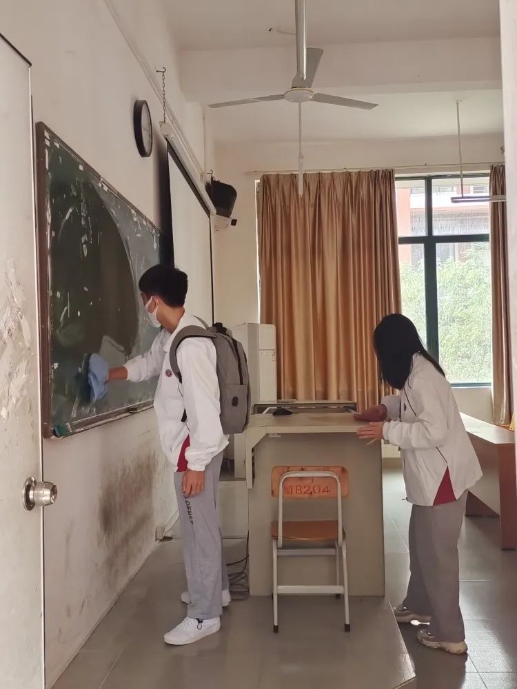 在活动过程中,同学们不怕苦、不怕累,对博学楼BC栋2-5楼的教室都进行认真清扫,不放过每个死角。有的同学负责用抹布擦黑板,有的同学负责清扫,有的同学负责倒垃圾,大家都积极配合、分工合作。同学们纷纷表示,做好保持校园清洁这项工作是学生应尽的义务。经过同学们的齐心协力,校园课室环境焕然一新