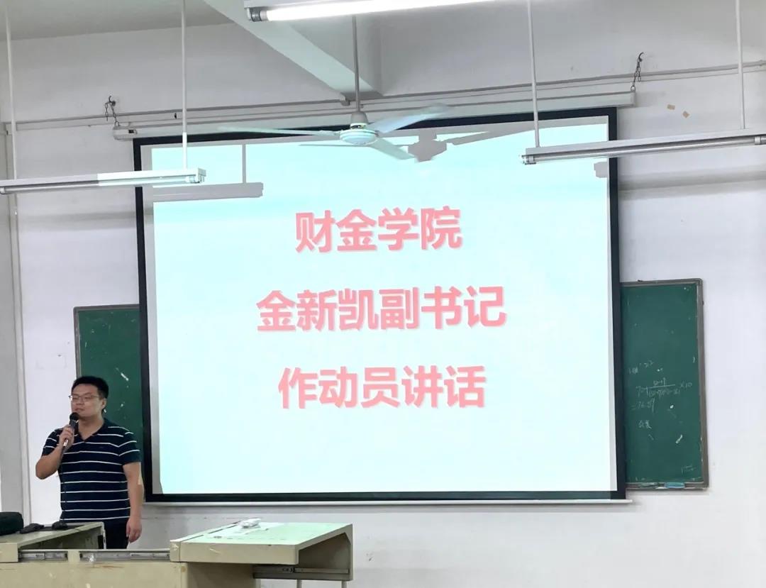 为积极响应学校开展第九届田径运动会的号召,充分调动运动员士气与志愿者工作的热情。财金学院于2021年11月18日晚9:00在博学楼C301隆重召开“财金学院第九届校运会动员大会”。出席本次会议的有:财金学院党总支副书记金新凯、团总支书记郑傲然、马正娟老师和财金学院全体运动员及志愿者。