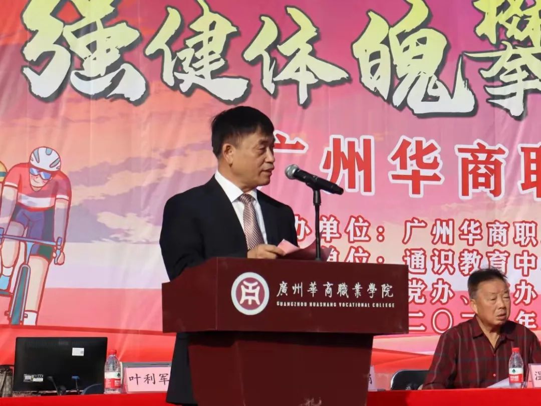 紧接着校长林琨智教授讲话,他强调运动能促进身心健康,发展意志品质,健全人格,提高审美形态等方面,也能促进学生全面发展,希望同学们以热情的状态去演绎华职人特有的精神风貌。