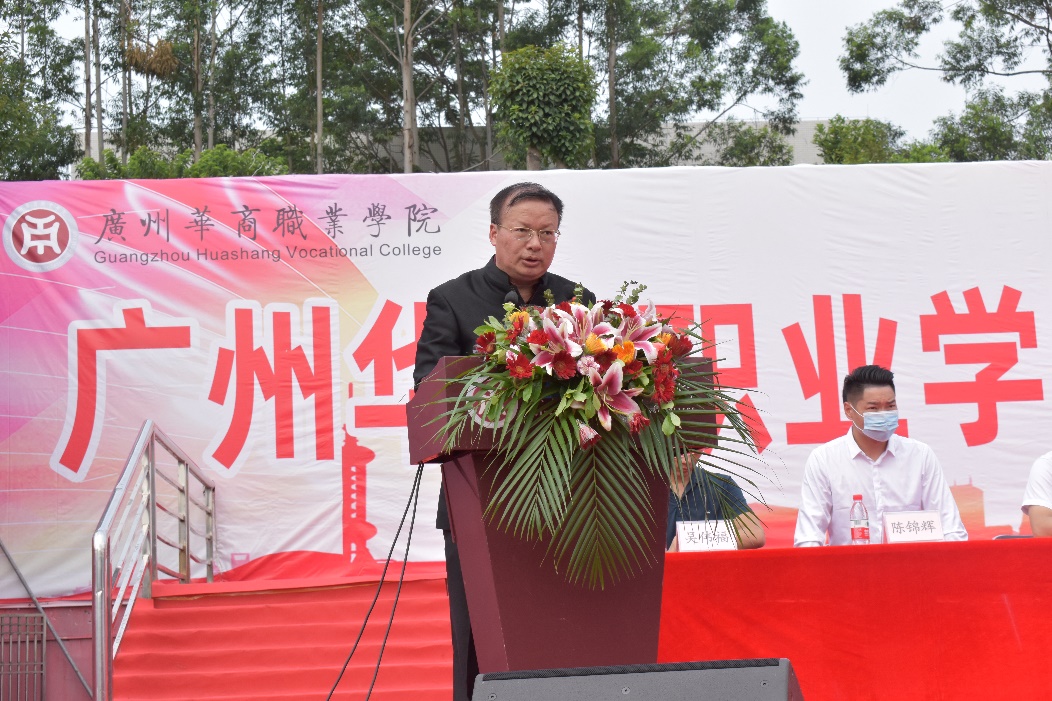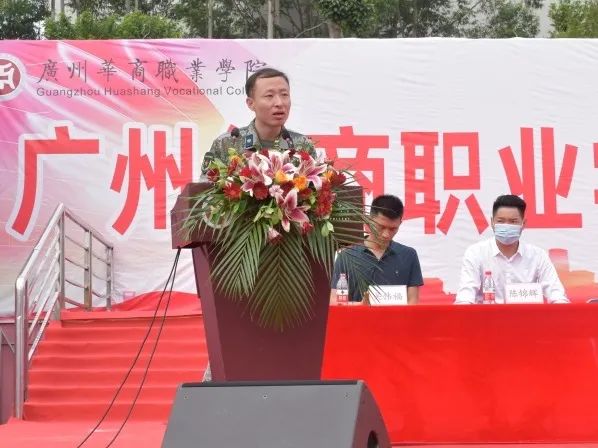 首先,增城区人民武装部政治工作科科长祁海洋作军训总结讲话,表示希望同学们在未来人生的道路上,坚守在军训中磨练出的坚韧不拔的强大意志和吃苦耐劳的精神品质,努力成为有担当、德智体美劳全面发展的时代青年。