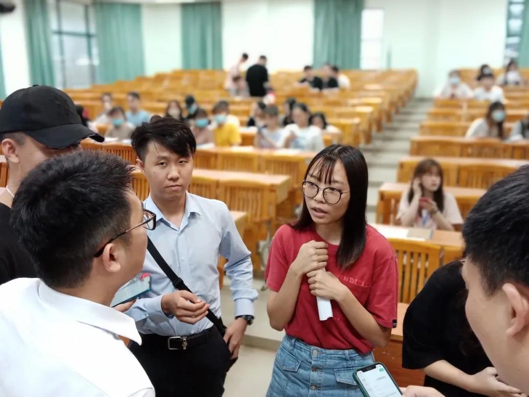 随后,已入职东莞证券长安分公司的校友钟家洛分享了他的求职经验和工作经历,建议同学们明确自己的职业规划,调整就业心态,并通过视频,就公司背景、公司文化、公司现状以及就业岗位福利待遇为同学们做了详细的介绍。会议上,两位负责人通过现场提问,幽默风趣的方式增强了同学们的兴趣,获得同学们的一致好评。最后,李建庭经理热情的为同学进行了详细的答疑。