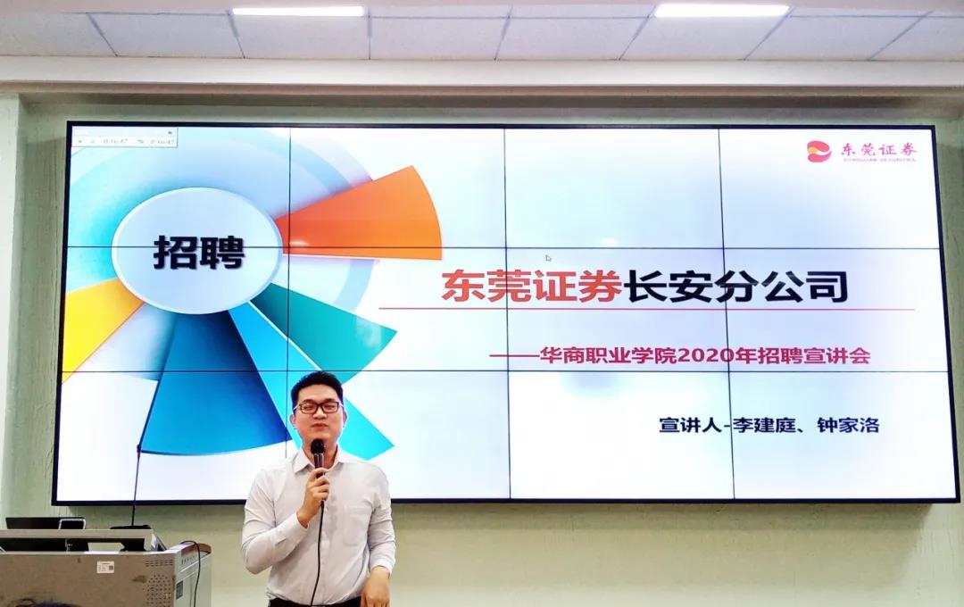会议伊始,18级学生由工作人员的引导有序进场。东莞证券长安分公司的李建庭经理作为本次宣讲人,向同学们详细介绍了东莞证券长安分公司的企业状况、成长历程和发展战略。
