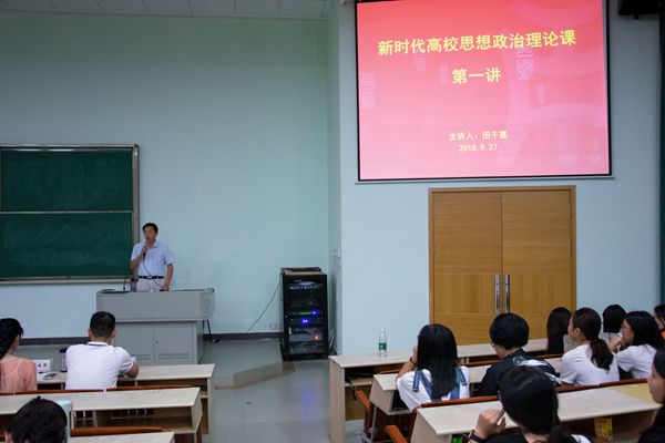 为了更好的贯彻落实好习近平新时代中国特色社会主义思想和党的十九大精神,帮助新生尽快适应大学校园生活,熟悉学校的规章制度,我系于9月27日19点20分在励志楼B407举行了2018学年秋季学期思想政治理论课暨2018级新生入学教育讲座。莅临本次会议的嘉宾有系田千喜主任、殷建玲副主任、何标副主任、陈少兰副主任、各教研室主任、郑傲然老师以及2018级全体新生。