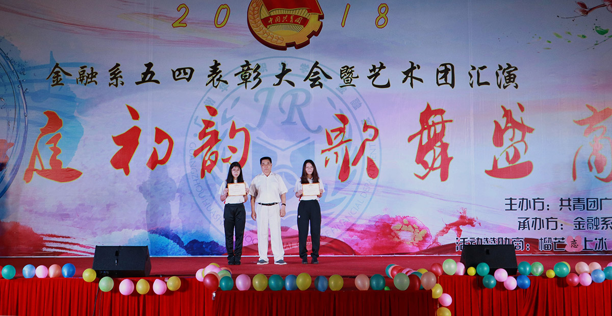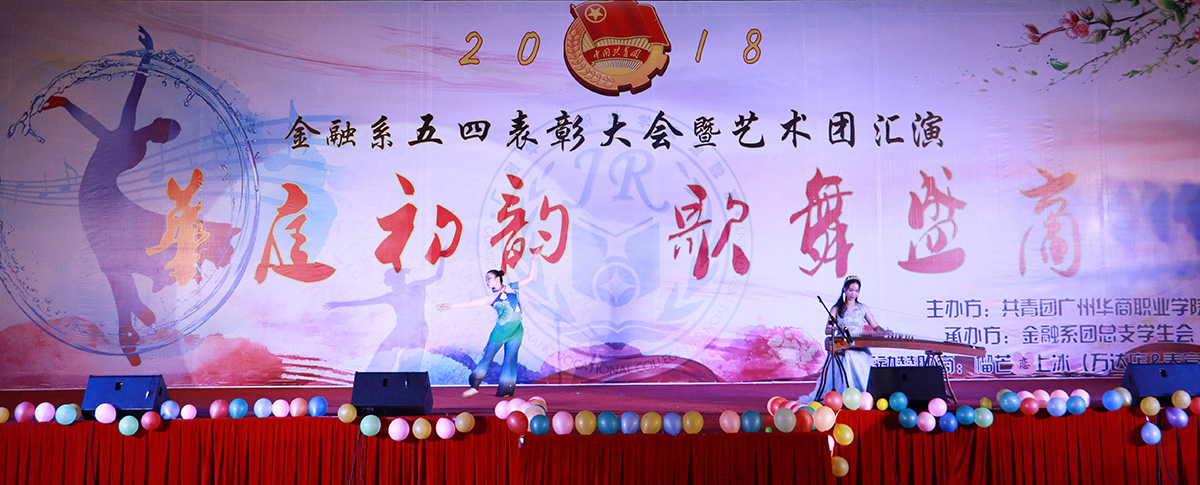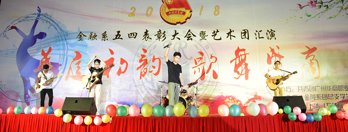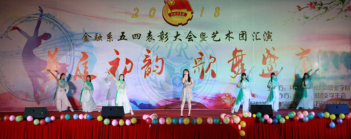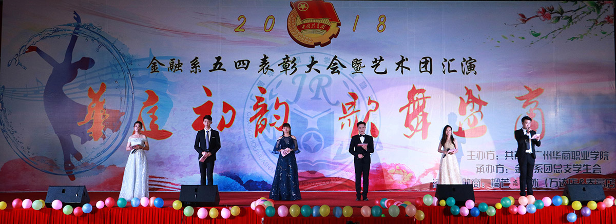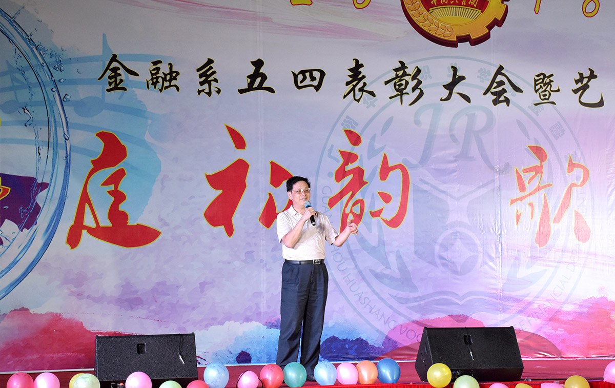 2018年6月6日晚,金融系在华职田径场举行主题为“华庭初韵,歌舞盛商”的五四表彰大会暨艺术团汇演大型晚会。院党委黄桂标书记、学院詹业宏副院长、金融系刘惠玲主任、学生处顾晖处长以及来自各系、部、处、室的领导老师们出席了本次晚会。
