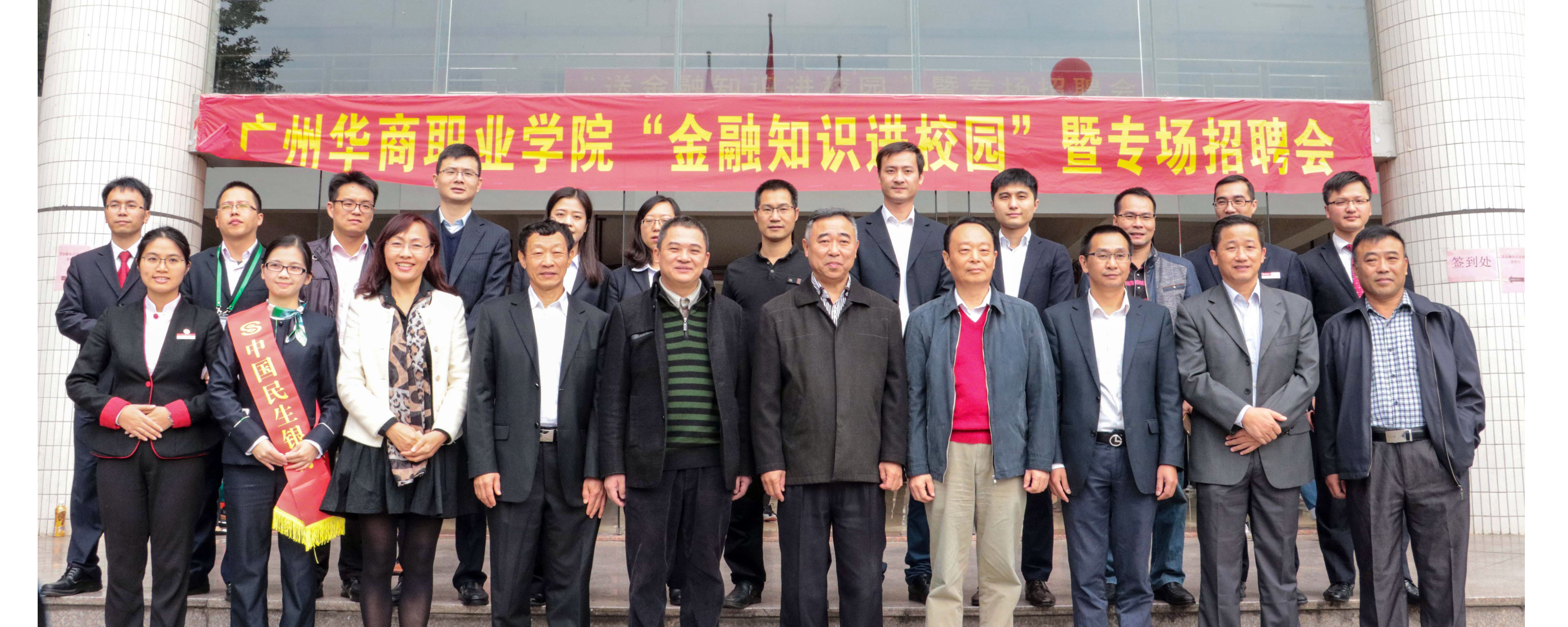 2016年12月3日上午10点,金融系在创新楼一楼大厅举办广州华商职业学院“送金融知识进校园’暨专场招聘会。广东省银行同业公会副秘书长王志军、学院院长王乐夫、华商教育集团发展部总监许国彬、学院副院长张武华、金融系主任刘惠玲、农业银行、交通银行等18家银行代表及各企业代表出席本次会议。会议由金融系刘惠玲主任主持。