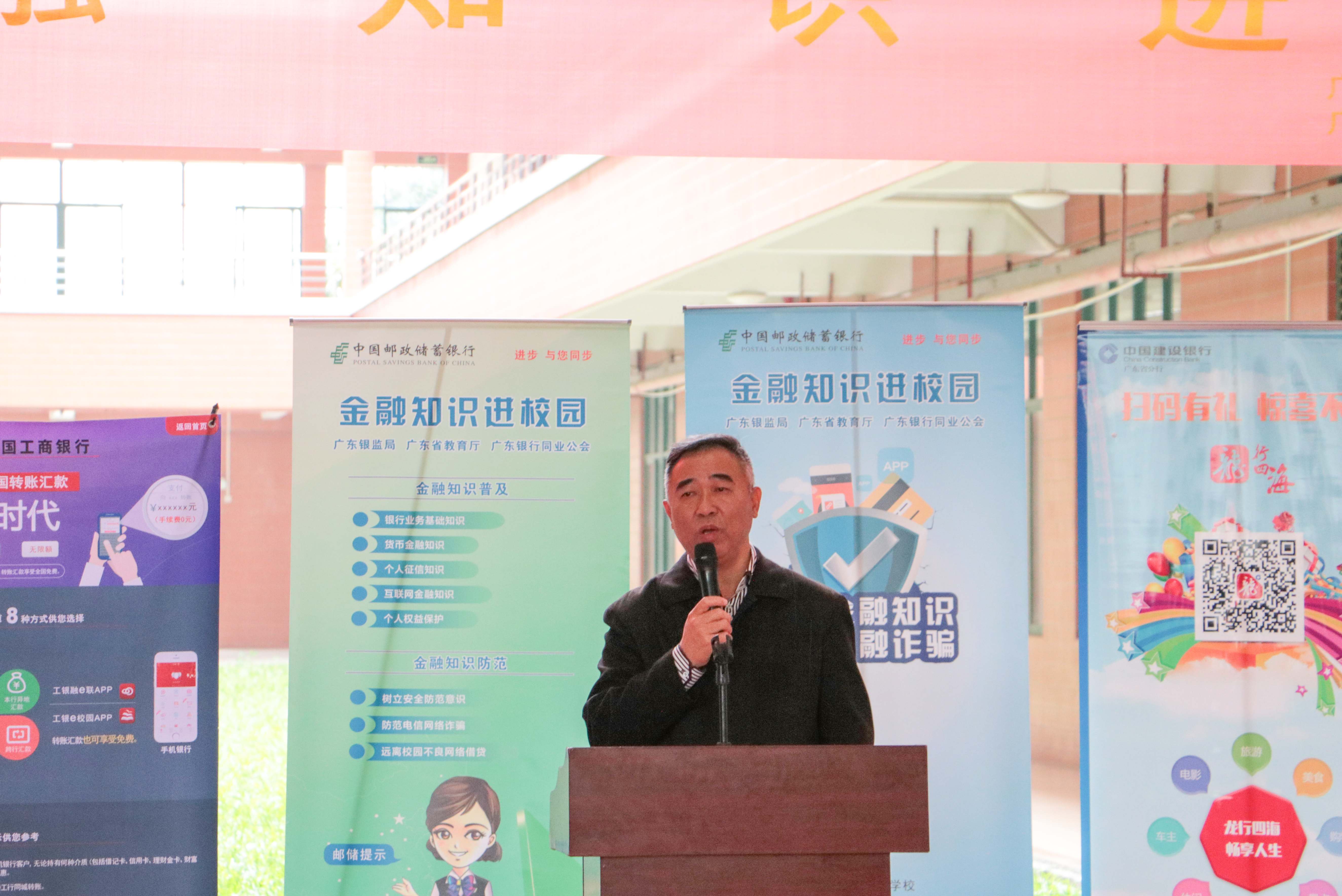 首先,张武华副院长上台致辞,他对参会企业代表表示热烈的欢迎。随后,广东省银行同业公会副秘书长王志军发表讲话,他阐述了有关金融风险防范意识的知识,更让我们深刻地了解这次“送金融知识进校园”活动举办的意义。紧接着,中国农业银行增城支行胡海威行长代表参会企业上台讲话。最后,学院领导与参会嘉宾合影留念。
