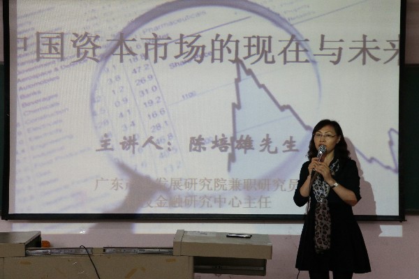 为了拓展同学们的金融视野,认知金融产业发展方向,2017年4月11日下午,金融系特邀广东产业发展研究院兼职研究员陈培雄先生,开展金融专题讲座《中国资本市场现在与未来》。金融系刘惠玲主任、投资与理财专业负责人黄艳丽老师以及金融系各专任老师参加了此次讲座。