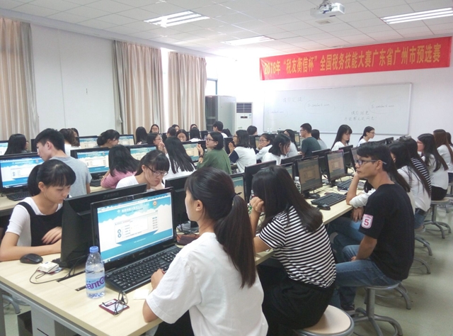 2016年“税友衡信杯”全国税友技能大赛预选赛全国设立85个分赛点,同一时间同一套试卷公平竞技,本次在我系承办的广州赛区参赛学校共8所,分别是广州华商职业学院、广东培正学院、广东海洋大学寸金学院、广州商学院、广州大学华软软件学院、广州番禺职业技术学院、广东农工商职业技术学院、广东水利电力职业技术学院,每个学校6名学生参赛,共48名选手集中竞赛,每所学校6名学生进3名学生,分为高职组与本科组,每组选前50支参赛队伍。比赛期间学生争分夺秒一比高下,带队老师则安排在创新楼三楼会议室进行学术交流,分享竞赛技巧,积极探讨教学方法、教学手段。