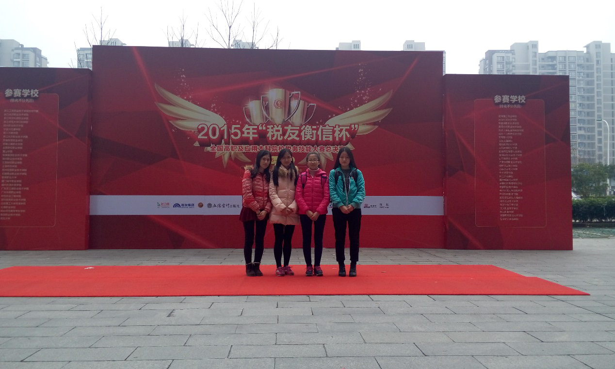 该次比赛由中国高等教育学会高等教育财经分会主办、税友集团.浙江衡信教育科技有限公司协办,这是全国首次举行的大规模税务技能大赛,经过全国154所高校的激烈海选赛和预选赛的竞逐我系代表队以全国高职组第8名的成绩成功进入了总决赛,这也是我系首次参加全国税务技能大赛,能取得如此佳绩实属不易。在总决赛的筹备过程中,我系代表队在指导老师的指导下积极探索大赛的赛程和内容,不断更新最新的税法知识,熟悉税务实训软件的操作,弥补在理论知识和实践操作的不足。经过一个月的赛前准备,由指导老师林锦妍老师带队,参赛队员由14级会计1班林晓庆、梁婉莹,14级会计4班姚晓丹组成,共同远赴杭州参加了总决赛。