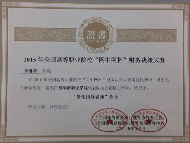 11月14日和15日,我系五位同学代表广州华商职业学院,参加由全国高等财经职业教育协作委员会和全国高等财经职业教育发展研究中心共同主办的2015年全国高等职业院校“网中网杯”财务决策大赛南区赛。