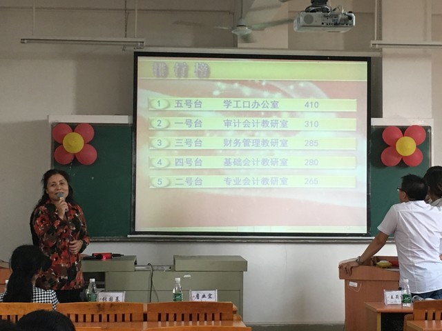 经过激烈的角逐,学工办公室夺得了一等奖,审计会计教研室获得二等奖,财务管理教研室获得三等奖,基础会计教研室和专业会计教研室获得优秀奖。
