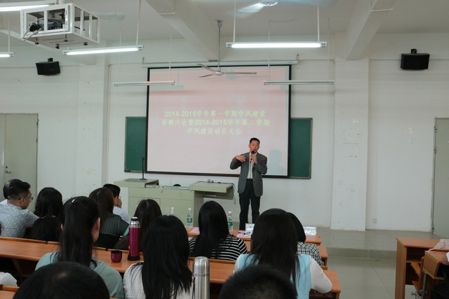 最后,学院詹业宏副院长为本次大会进行总结,詹院对我系各方面的规章的完善程度表示满意,并对我系在学风建设上取得的成绩给予高度的赞赏,同时也为我系往后的发展提出了宝贵的建议。