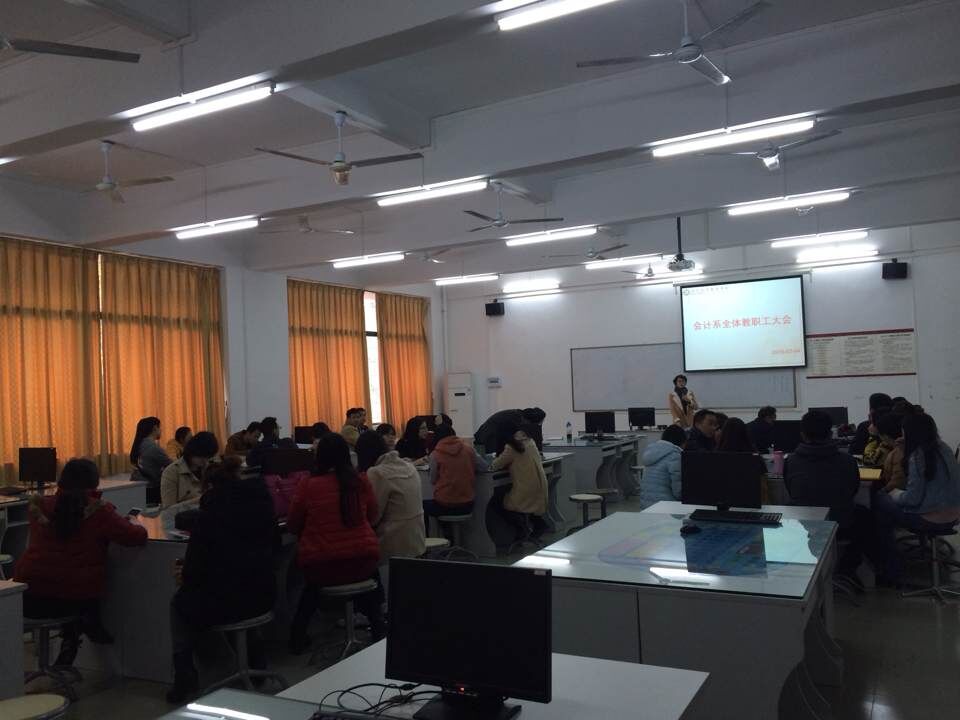 首先,王莉丽主任对上学期的工作作了总结,对上学期的工作从9个方面给予肯定,同时对本学期的主要工作分四个方面进行了布署,强调本学期要在做好各项常规工作的基础上,全体全力以赴,相互沟通配合,重点做好以下工作:1. 迎评工作:开展说课和公开课活动;建设精品课程;参加微课和慕课培训;增加校企合作;落实教学管理模式“12345”。2. 教学科研:充分发挥教研室作用;落实特色专业建设项目;严格执行教学纪律,杜绝教学事故;申请校级课题2项;修订《财务会计实务》教材;新编《基础会计》教材。3. 会计考证和竞赛:继续加强开展会计辅导培训工作,执行保姆式培训,采取以培训教师为主导,管理员为辅助的方式,努力提高会计从业资格证通过率;积极准备参加教育厅举办的会计技能大赛和ERP沙盘模拟比赛。4. 团学工作:做好七大团学组织的协调分工;开展创新活动:举办五四表彰及师生联谊会、开展校友会工作和举行心理情景剧剧本创作大赛;信息化—微信公众号的管理和运用;深化学风建设——开展文明课堂。