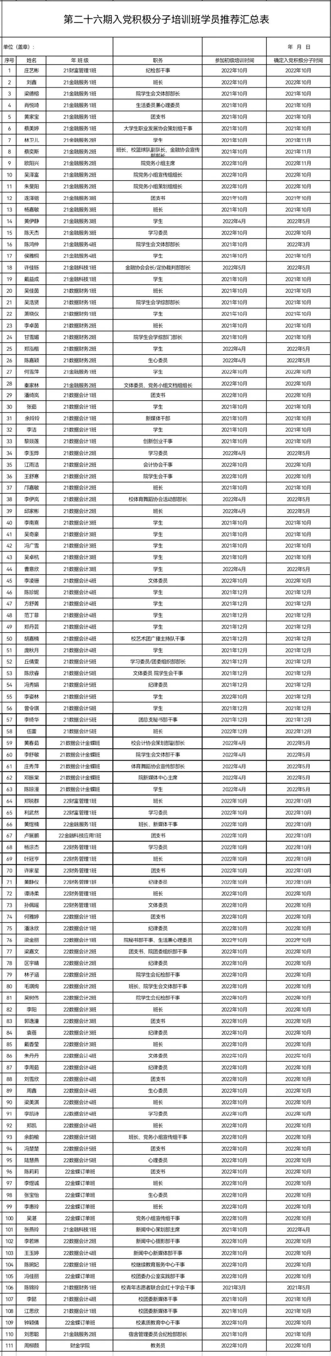 第二十六期入党积极分子培训班学员