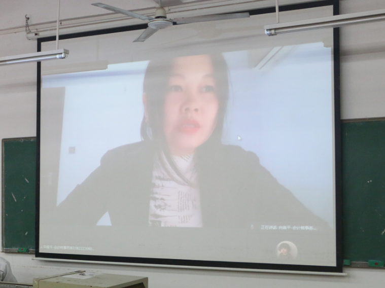 华业向阳(广东)会计师事务所副所长向喜平女士因疫情不能亲临现场,进行了腾讯会议线上致词,首先,向所感谢了广州华商职业学院领导对华业向阳的认可,提供了校企合作的机会,为华业向阳输送了优秀的毕业生,并对获奖同学表示热烈的祝贺。随后,向所简单介绍了华业向阳的发展历程,分享了自己的成功经验,以此激励着同学们努力学习,坚持不懈,在专业的道路上不断探索创新,走得更远更稳。