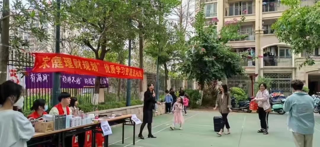 在经历了项目前期研讨和筹备后,2023年3月4日,为落实项目资源进社区,完成项目建设内容之一,项目团队邀请了中国人寿保险股份有限公司广州市分公司增城支公司综合金融规划师谢碧梅、高级客户经理易艳芳,在增城区清燕社区锦绣半山小区展开了一场精彩的“家庭理财规划”知识小讲堂,为社区居民进行了全面细致的讲解,核心要点包括:理财的概念、目的、必要性,理财的主流工具种类,理财过程中如何防范风险,家庭资产配置的“1234准则”等,让广大社区群众对家庭理财规划有了最基本的认识,并且理解到了它的重要性。宣讲过程中,社区居民们很感兴趣,积极参与互动回答问题,赢取礼品,并表示期待我院能推出更多丰富的系列活动,项目活动进展顺利圆满。