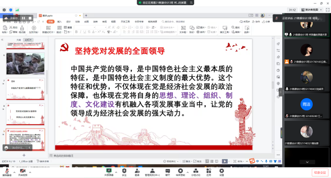 为深入学习贯彻落实党的二十大精神,加强青少年马克思主义思想教育,增强青年用马克思主义理论联系实践的能力,促进学生骨干的信念、品格、视野和能力的发展,我院于2022年12月12日、13日中午分别开展了青马工程学生宣讲会第二讲、第三讲。本次活动通过线上方式召开,分别由校青马学生宣讲团成员21数据会计3班何泽鑫、22数据会计5班林俊甫、21数据会计金蝶班谢炜莹、21数据会计4班吕依雯四位同学宣讲。
