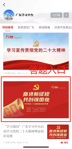 打开“学习强国”APP➡️广东学习平台➡️奋进新征程共创强国业学习党的二十大精神理论知识竞赛➡️在“您所属的地区(系统)选择“省内高校”,点击提交后即可进入挑战答题。(如图所示)