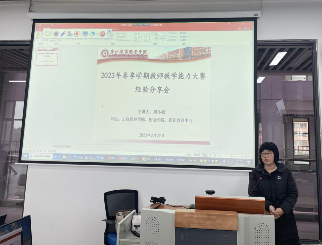 2023年3月29日上午10时15分,由工商管理学院发起,财金学院、通识教育中心参与的2023年春季学期教师教学能力大赛经验分享会如期举行。会议由工商学院2022年获得省赛二等奖的团队负责人周冬娥老师主讲,在简单介绍两大教学能力比赛后,分四步(学习比赛文件、观摩获奖作品;组好参赛团队、选定比赛内容;做好设计方案、录好实施视频;编写实施报告、完善人培课标)详细讲解了团队的备赛经验,分享了备赛过程中可能会出现的问题和重难点。